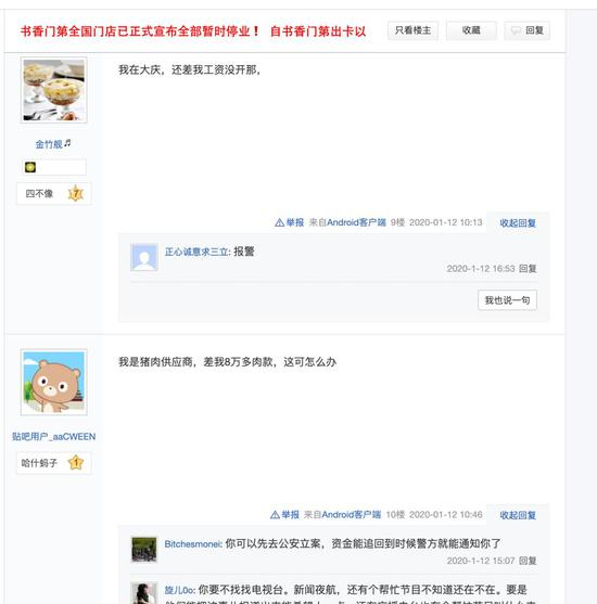 除了顾客在书香门第会员卡里存的钱可能拿不回来了,还有人曝出工资没开,有猪肉供应商曝出书香门第还欠自己8万多贷款,当然这些信息还有待查证。