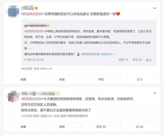 单就#新型肺炎症状#这一话题的第一页,出现问题和网友们表达的状态就高度一致——对号入座后,情绪愈发无法自控,恐惧、害怕,成为主导情绪。