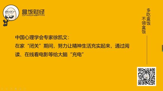 徐凯文建议,普通民众要重视激活自己的“社会支持系统”,即多和家人、朋友进行沟通,特别是线上沟通;在家“闭关”期间,努力让精神生活充实起来,通过阅读、在线看电影等给大脑“充电”。