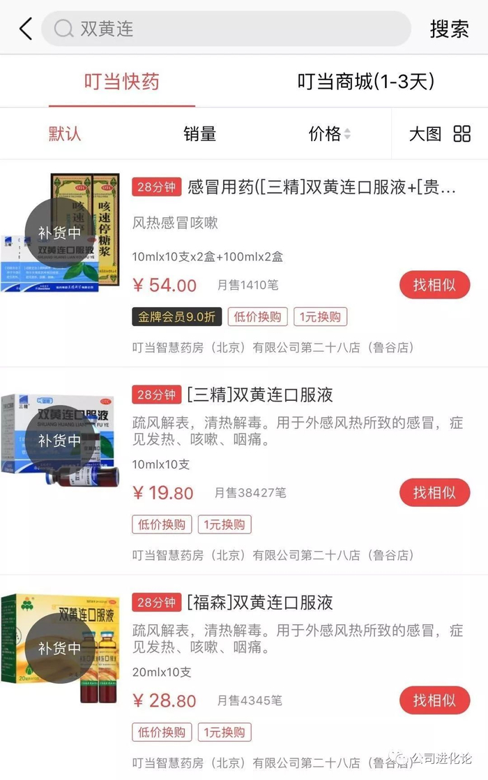 当天晚间,淘宝、京东等电商平台上,双黄连口服液大部分显示无货或下架。苏宁易购各药品旗舰店有数款产品,但几分钟后也下架或无货。