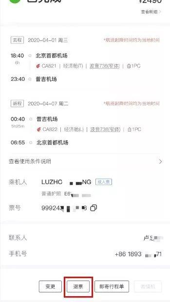 国航客票退改提示!