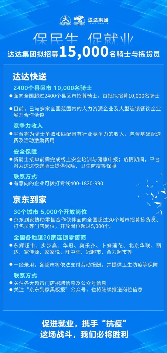 抗疫情 稳就业 京东集团、达达集团将联合招募超35000个正式及临时员工