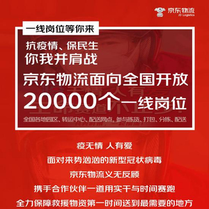 目前,京东物流将面向全国开放包括仓储员、分拣员、快递员、驾驶员等在内的超过20000个一线岗位。同时,已有十余家企业与京东物流开展了多种形式的异业合作,输送了700余名员工在京东物流各园区、转运中心、营业部等参与拣货、打包、分拣、配送等工作。