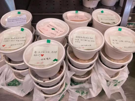 这些便签纸,是网上征集到的网友对医护人员想说的话,老乡鸡武汉员工写出来跟餐一起送给医护人员(图片来源:受访者提供)