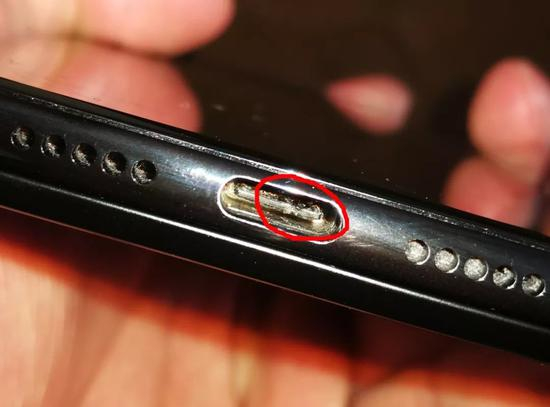 ▲手机USB接口和充电线接口均有被烧黑的痕迹