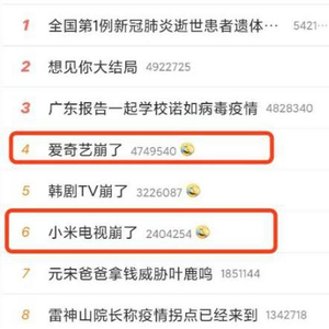 宅家避“疫”,让在线视频成为大家必不可少的一种陪伴。昨夜,#爱奇艺崩了#、#小米电视崩了#接连两条热搜,引发广泛讨论。