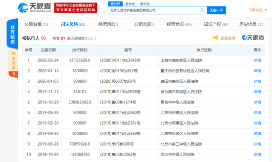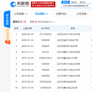 天眼查数据显示,2月24日,北京汇源饮料食品集团有限公司再成被执行人,执行标的27153620.0,执行法院为上海市浦东新区人民法院。