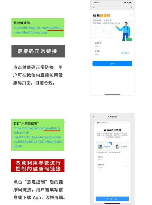 就在前一天,杭州“健康码”的技术提供方阿里方面称,微信全面封杀钉钉的域名,造成部分地区健康码在微信端无法正常访问。当时微信方面表示,3月2日晚杭州健康码出现无法直接跳转,是因为该码标记了口令类信息“吱口令”,触发了《微信外部链接管理规范》中的第17条“特殊识别码、口令类信息”。微信方面已在3月3日上午联系并建议服务提供方调整,目前对方已在指引下完成整改,已恢复其外链的正常跳转。