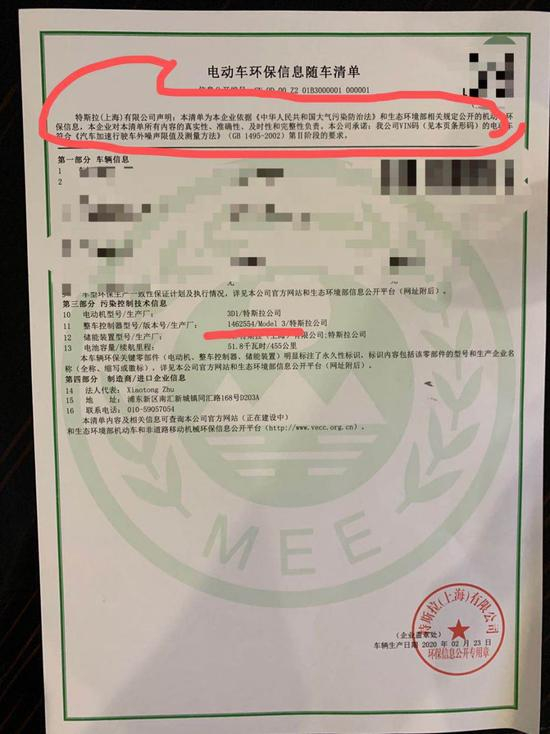 记者调查中发现,有消费者反应,进口的Model 3同样存在“减配”问题,但消费者投诉的进口Model 3的“减配”问题与国产车略有不同——“芯片HW3.0”并未被写入车辆的“环保信息随车清单”。