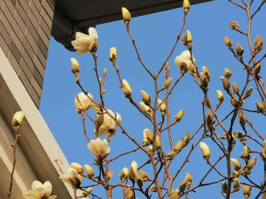 今天的北京,万里晴空,不由得让人产生好心情。中午饭后,我坐在阳光下的椅子上,美美地晒了半个小时太阳。邻居家的那颗玉兰花树,前两天在春雨中还花蕾紧闭,今天的阳光中,突然就盛开出了冰清玉洁的美丽花朵。