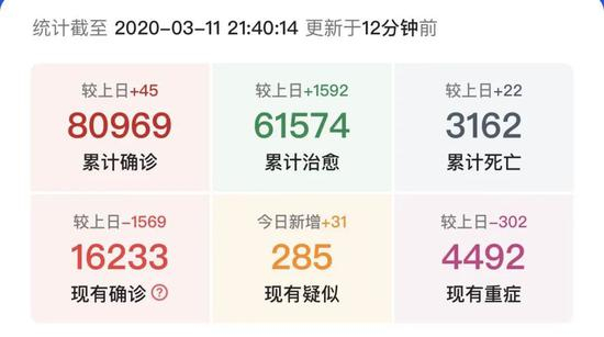 今天的数据在正常范围内波动,确诊增加了45例,疑似增加了31例。确诊的45例中,武汉只占了13例。北京增加的6例,都是输入病例。未来一段时间,防止输入病例的扩散,将会成为各地的艰巨任务。全世界各地的华人,现在都在想方设法飞回中国。国内主要城市机场周边可以隔离的酒店和设施,已经人满为患。更担心有些人携带病毒,还成为漏网之鱼到处行走。郑州有个球迷,3月1日飞到意大利看球,后来飞回北京,从北京乘高铁回家,结果10日确诊。