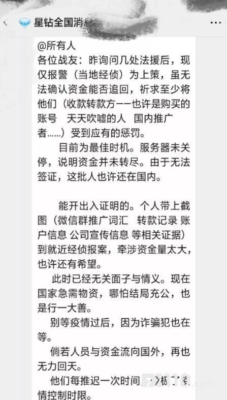 2月28日晚间,星钻拍卖科技有限公司官方发布公告,宣布平台暂停运营,大批投资者都慌了!据各大维权群消息显示,在这个庞大的资金盘里,保守估计亏损会员达几十万人,涉案金额保守估计过百亿。