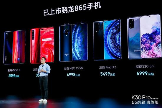 2019年底发布的Redmi K30,因采用了全球首发的高通骁龙765 5G处理器,让其在5G领域抢得了先机,而此次发布的Redmi K30 pro,搭载了时下最具热度的骁龙865处理器,再次准确地踩上了行业时点。因为目前采用骁龙865处理器的手机,全都是全球各大品牌的最顶端旗舰手机,例如OPPO的Find X2系列,vivo的NEX 3S与IQOO 3,三星的S20系列,以及小米的小米10系列,这些旗舰手机的起售价大多都在4000+,即使最便宜的IQOO 3的起售价也在3598元。