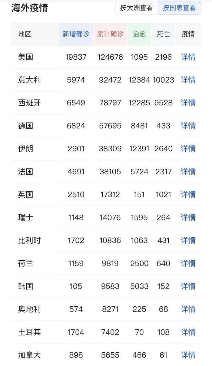 美国疫情发展速度这么快,是大多数人没有想到的。其实我觉得不是原来人少,而是原来大家都没有去检测,现在检测出来的人多了。几天前特朗普口口声声称“中国病毒”,但现在在和中国领导人通完电话之后改口了。但其已经造成恶劣影响,美国各地普遍出现了对于华裔的排斥情绪。而且随着疫情的发展,更多的美国人会情绪失控。希望在美国的华人一定要充分做好对于自身的保护工作。