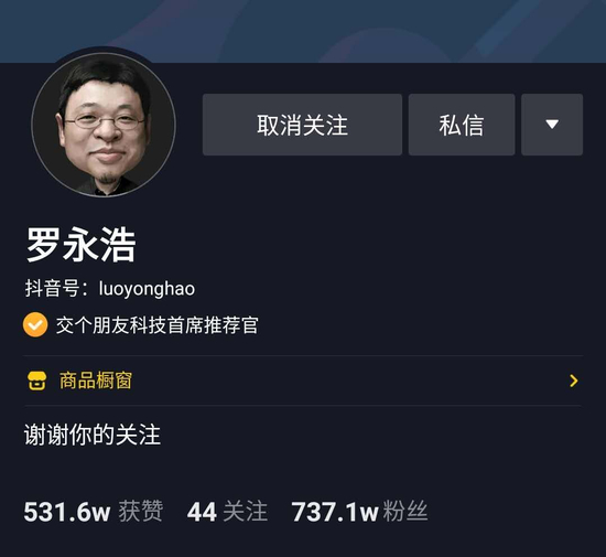 虽然罗永浩目前在抖音的粉丝还没有上千万,也没有参与过双十一的直播大战,但这或许并不影响罗永浩成为“抖音的罗永浩”。