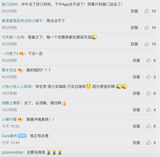 今天,也有许多消费者挤兑优惠券,瑞幸咖啡门店和线上都爆单了。
