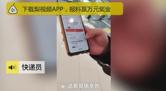 一个快递小哥说:“这都是瑞幸的(单子)”。他说,平时的话也挺多,但是没有今天这么多。今天确实忙不过来,从10点开始半个小时内就接到了十几个单子。