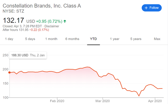尽管科罗娜高管曾经否认该品牌销量因此出现下滑,但资本市场似乎并没有信心。科罗娜品牌的母公司美国星座集团(constellation Brands)股价从2月下旬开始跳水,至今累计跌幅约37%。