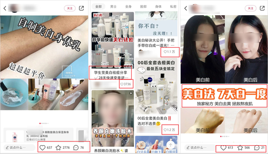 如果你常逛小红书,想必一定看见过各种沙雕低质内容。 比如,你去随便搜一下美白、祛痘等关键词,往往能搜出很多文案夸张、P 图痕迹明显的分享笔记。