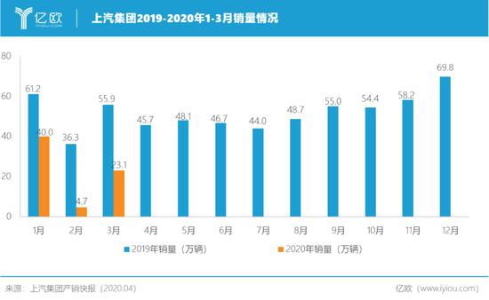 屋漏偏逢连夜雨。2020年上汽集团开局不利,第一季销量惨淡,新车销售累计下滑55.7%,旗下三大合资品牌:上汽大众、上汽通用以及上汽通用五菱第一度销量平均降幅达到60%。同样,自主品牌也折损了33.7%。