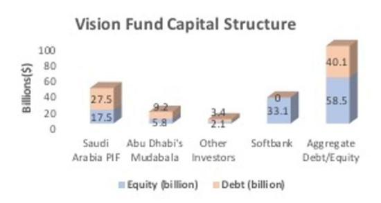 在愿景基金的资本结构里:软银以股权形式,出资了331亿美金。