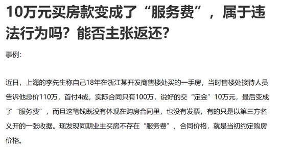 事实上,关于“购房服务费”的争论由来已久,如果中介公司在购房前没有明确告知购房者,有欺诈之嫌。