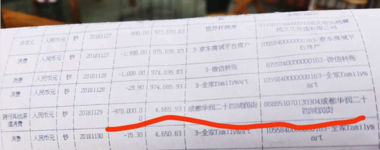 △银行流水,97万元一次性汇入华润二十四城。(图片由业主提供)