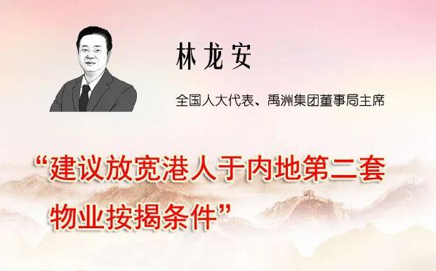 全国人大代表、禹洲集团董事局主席林龙安提出推动粤港澳大湾区一体化的建设,建议加强香港跟内地金融合作;推动香港科研成果在内地转化落地;加强香港跟内地交流平台建设。
