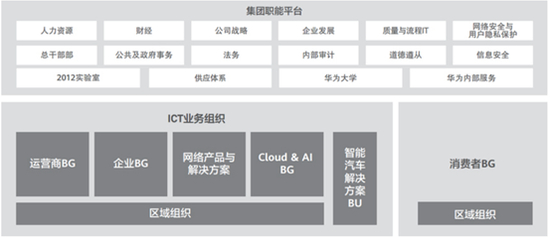 一方面,将基本组织结构定义为作战组织,包括ICT业务组织和消费者BG;将事业部和地区公司构成的二维基本组织结构,转化为客户、产品和区域的三维度协同作战模式,可以为“客户需求和技术创新双轮驱动”价值创造、提供更好的组织保证;