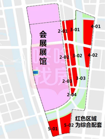 招商蛇口+华侨城以310亿成交的地块就是下图中的围绕会展展馆的红色地块,继推出会展湾·南岸、会展湾·中港、会展湾·水岸后,本月中旬即将开盘的是4-01地块的会展湾·东城。