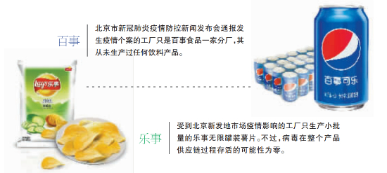 在当日的发布会上,百事公司大中华区集团事务部企宣总监樊志敏介绍,“我司磁魏路分厂监测到新发地市场输入个案后,第一时间启动应急预案,采取停产停业、产品封存、环境消杀、人员隔离等措施;已经对产品及厂区环境进行了全方位取样调查,目前测试产品安全,同时保证新发地疫情后的产品均已封存”。