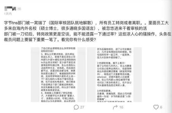 前不久一篇与字节跳动有关的励志文《扩招10000人!疫情下的字节跳动势不可挡》刷屏,但甚少有人关注到,3月下旬,字节跳动在北京进行了一场涉及百人的裁员。