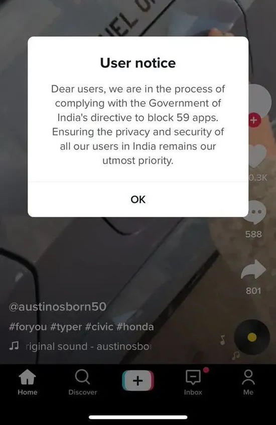TikTok正在配合完成印度政府屏蔽要求,将继续按当地法规保护公民数据隐私,不与任何海外政府分享。