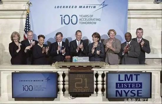2012年,洛·马公司董事会成员在纽交所敲钟,庆祝公司成立100周年。