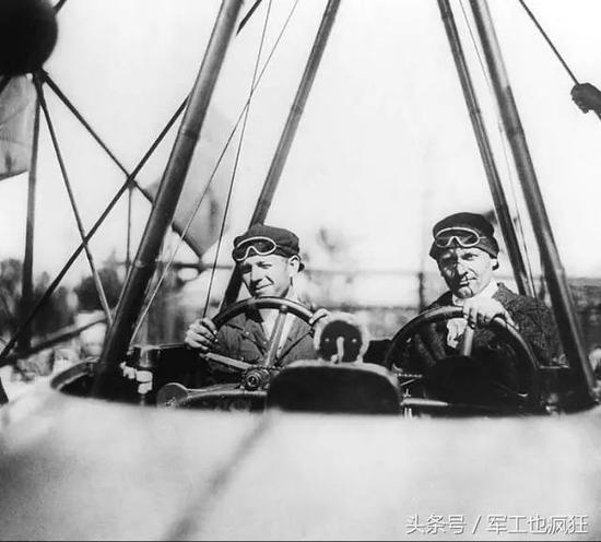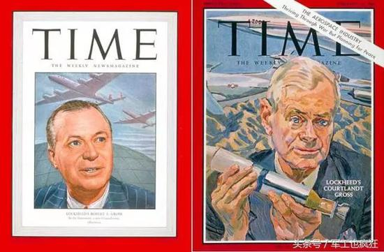1950年时的一张珍贵照片,左起:洛克希德公司的高管,总裁罗伯特·格罗斯和马丁飞机公司总裁格伦·马丁,四十五年之后两公司合并。