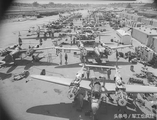 二战期间的洛克希德公司,生产设施不够,P-38“闪电”就在大街上装配。