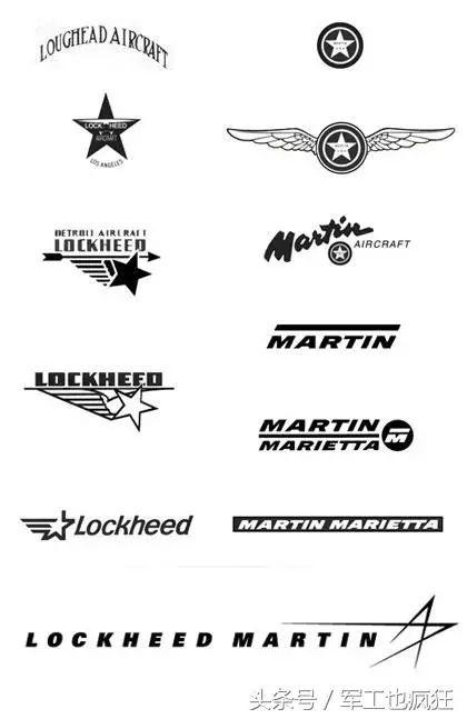洛克希德公司、马丁飞行器公司、马丁·玛丽埃塔公司和洛克希德•马丁公司的logo演变历程。