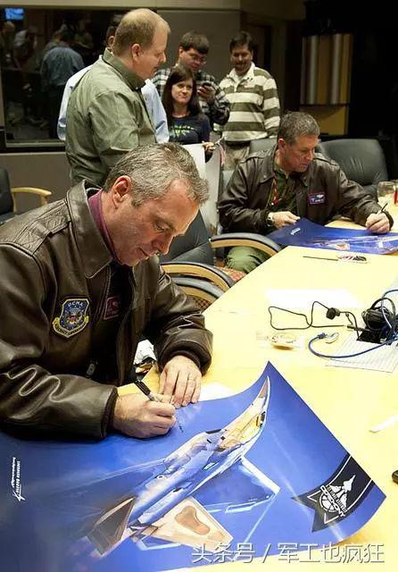 接收最后一架F-22,空军的接收人员在纪念海报上为网友签名。