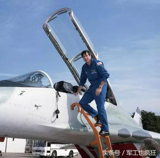 1988年的范堡罗国际航展,洛克希德公司的试飞员参观苏霍伊设计局的SU-27战斗机。