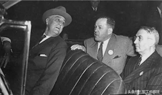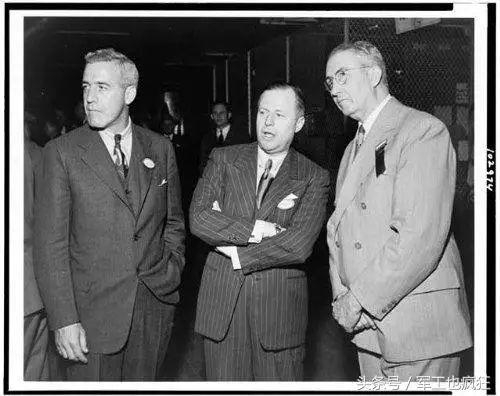 1943年4月26日,美国总统罗斯福、内布拉斯加州长格里斯沃尔德和格伦·马丁在奥马哈轰炸机厂。