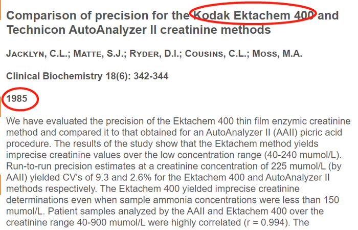 1985年的一篇关于柯达血清分析仪的文章