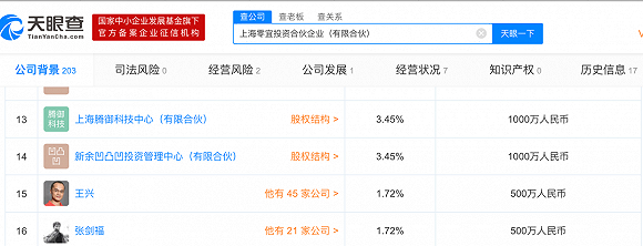 除了XVC,王兴还是上海零宜投资合伙企业(有限合伙)的股东,持股比例为1.72%。