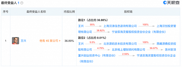 王兴的投资版图不仅仅局限于个人,他还通过“上海汉创投资管理有限公司”和源码资本两条路径,成为辰海资本一家投资主体的最终受益人。