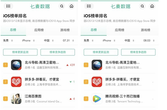 根据七麦数据统计显示,7月31日-8月3日,苹果App Store中的免费应用排行榜被一款名为《北斗导航-高清卫星地图苹果版》App霸榜。
