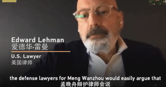 美国律师爱德华·雷曼:汇丰是否该交出这些文件?答案是肯定的。但我认为,孟晚舟辩护律师会说汇丰完全知道,那份PPT中没有任何误导性内容。因为孟晚舟和星通公司之间的关系是有公开记录的。