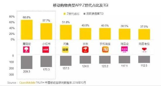 在主流购物类APP中,我们看到,唯品会Z世代的用户占比仅排在网易考拉之前。