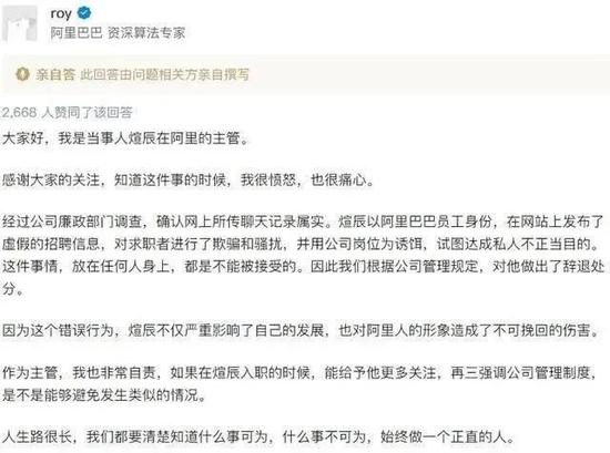 P8招助理事件当事人主管的回应