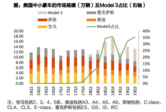 Model 3受到众多非豪车消费者的追捧,也印证了其性价比优势。图片来源:天风证券