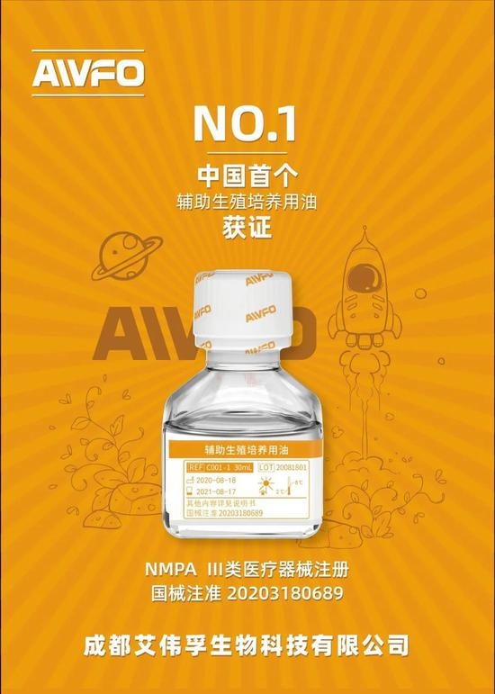 8月18日,成都艾伟孚生物科技有限公司(下称:艾伟孚)研发的辅助生殖培养用油获得国家药监局颁发的III类医疗器械注册证。它实现了该类产品国产同类III类证的零突破,以此撬动国产辅助生殖培养液的上市潜力。艾伟孚成立于2017年,是一家国内从事辅助生殖全体系培养液研发的厂商。