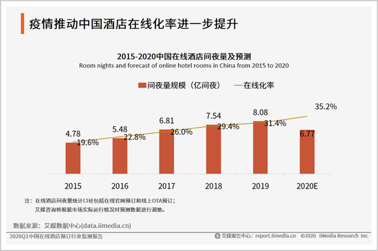 从预订方式来看,更安全更便捷的线上预订恢复更快。2019年,中国酒店预订在线化率为31.4%。2020年第一季度,在线化率提升至35.2%。